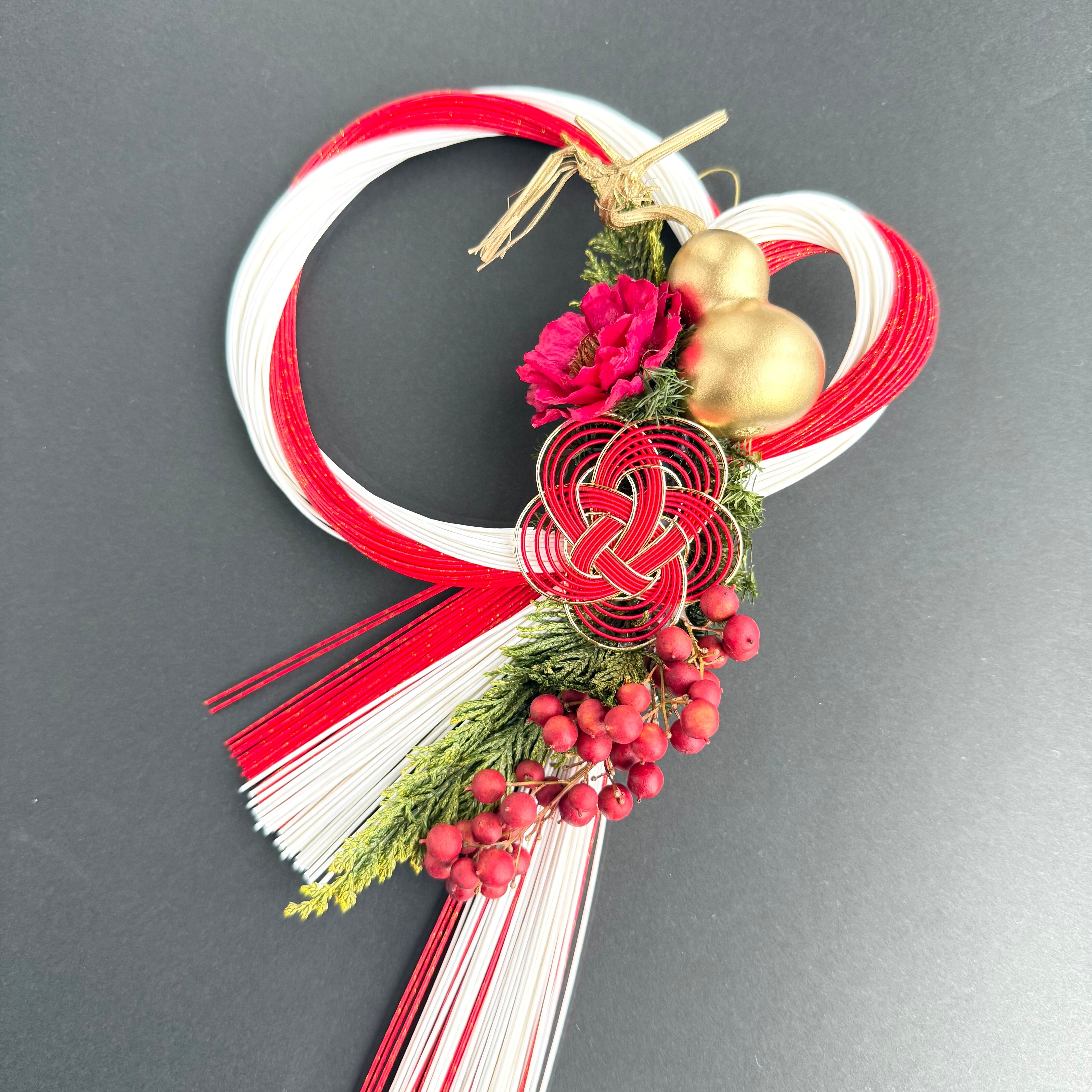 金の瓢箪、南天など縁起の良い素材で飾り付けしました。