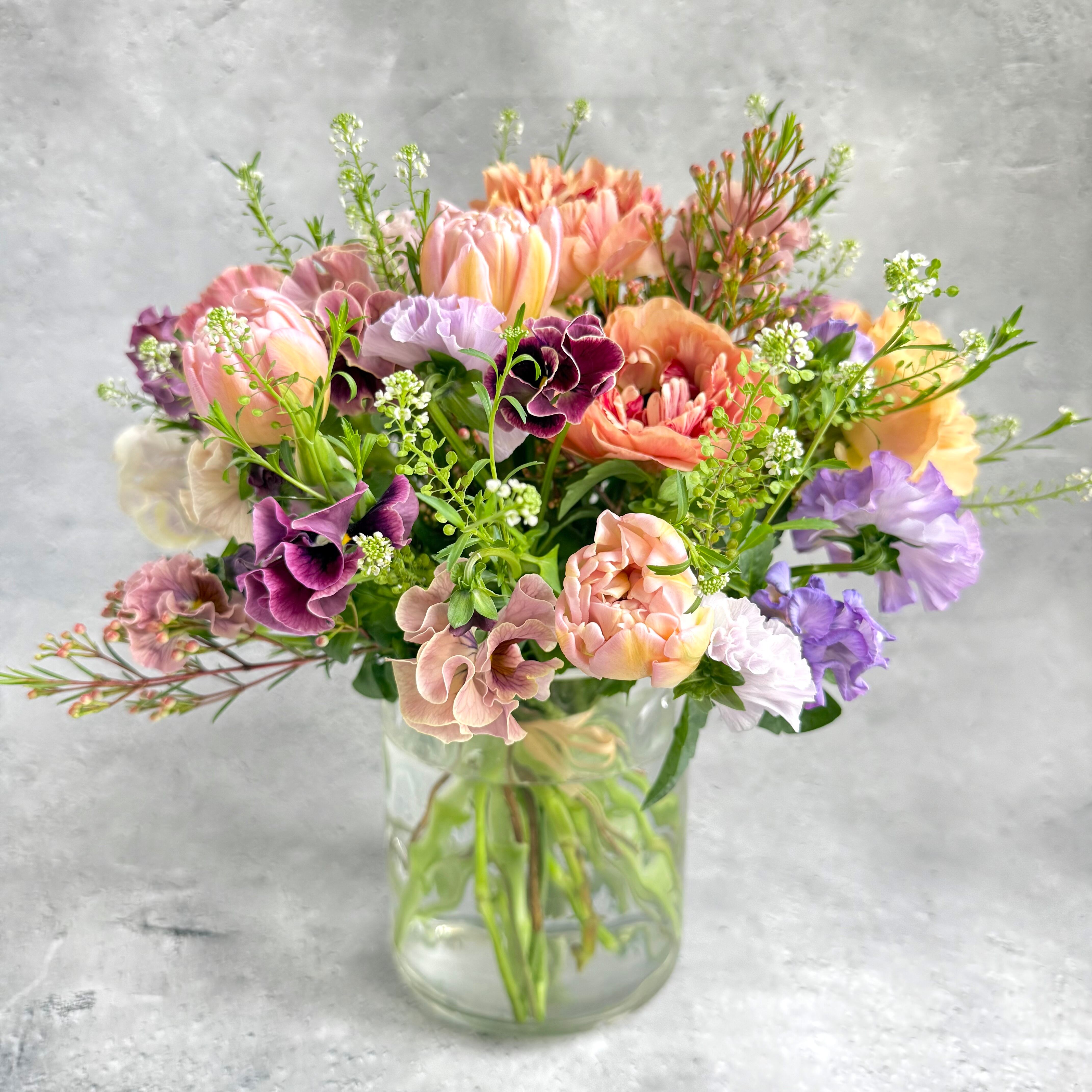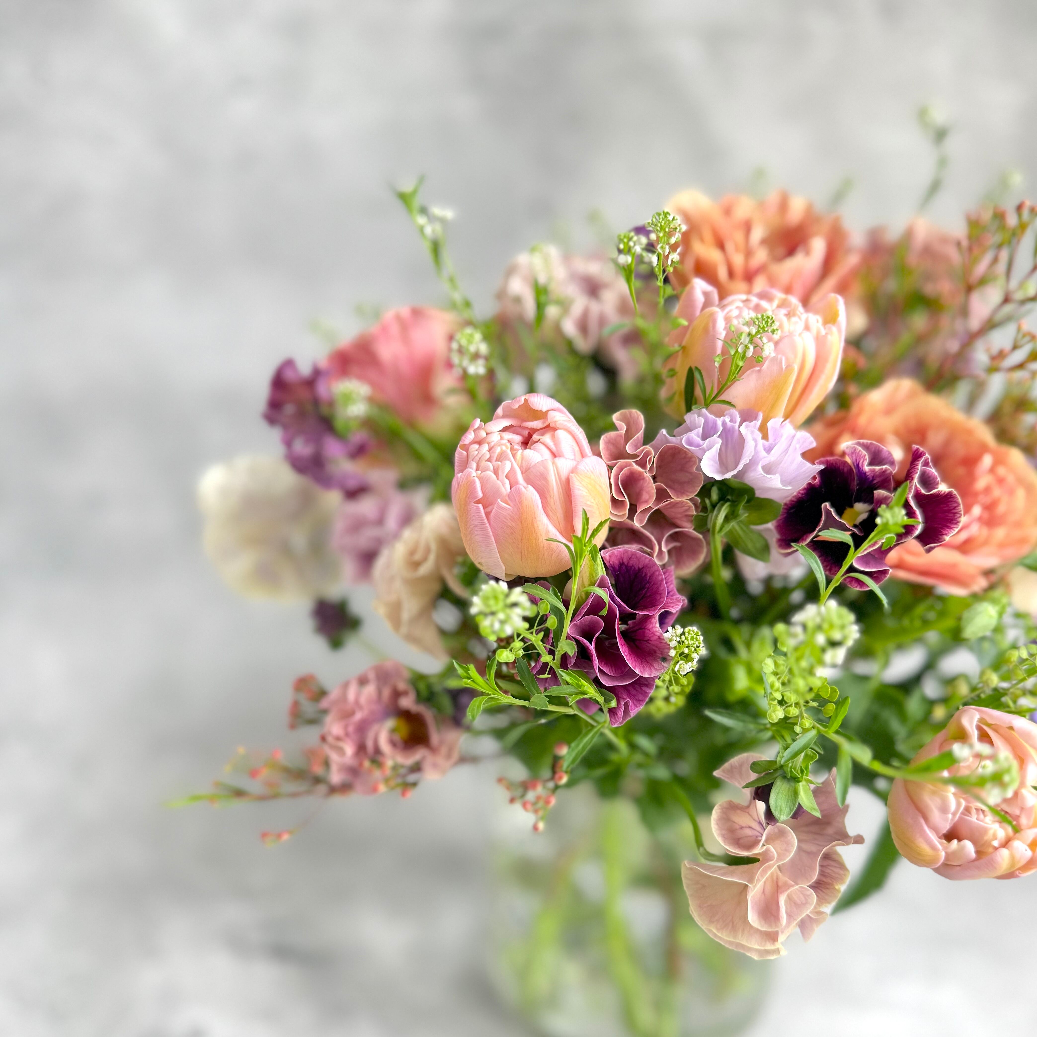春の庭のナチュラルブーケ/チューリップと季節の花の花束(卒園・卒業・送別ギフト)