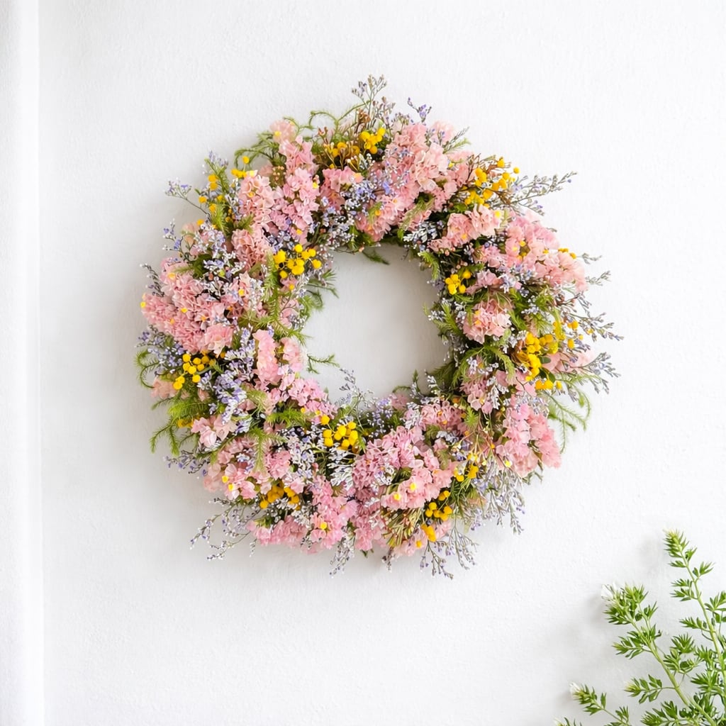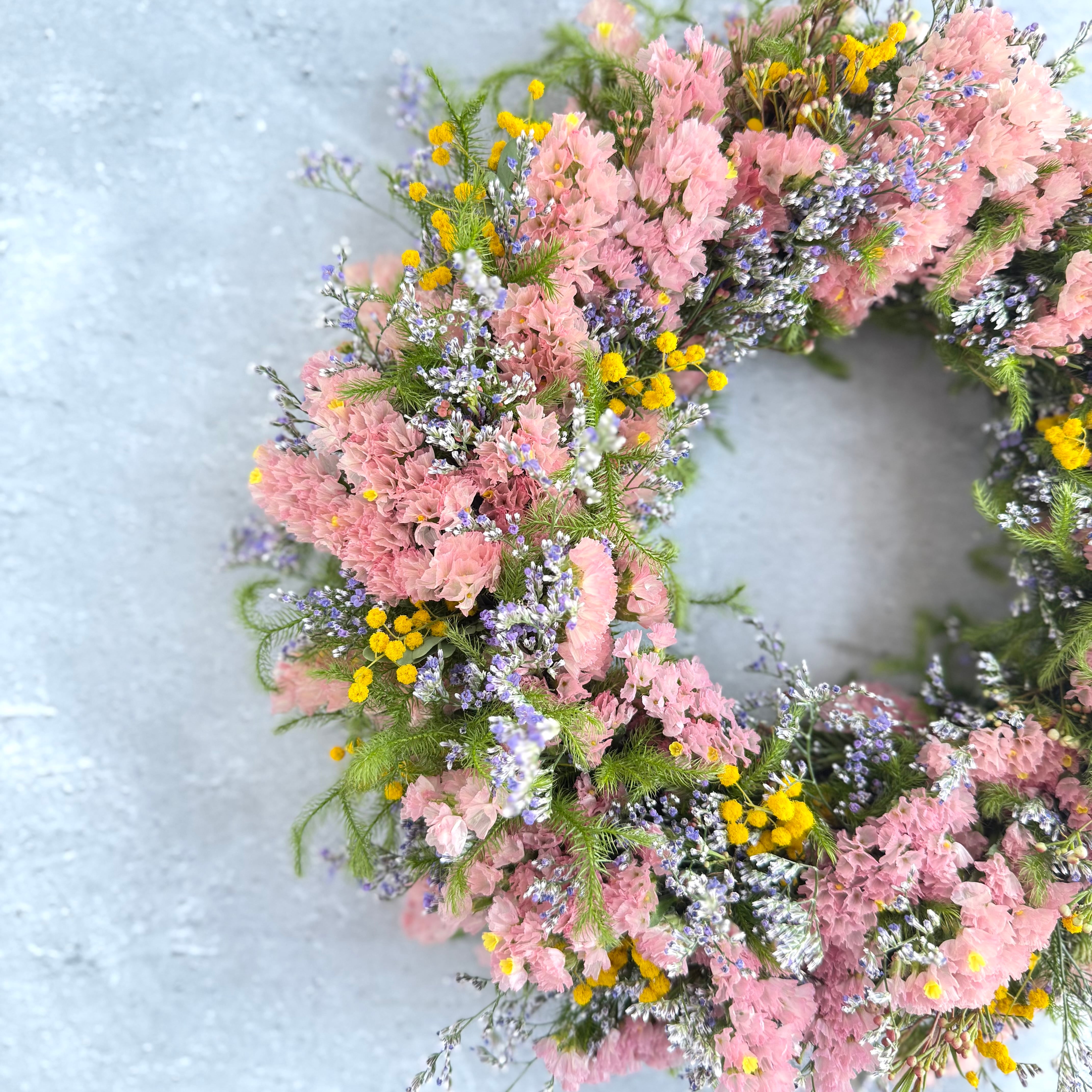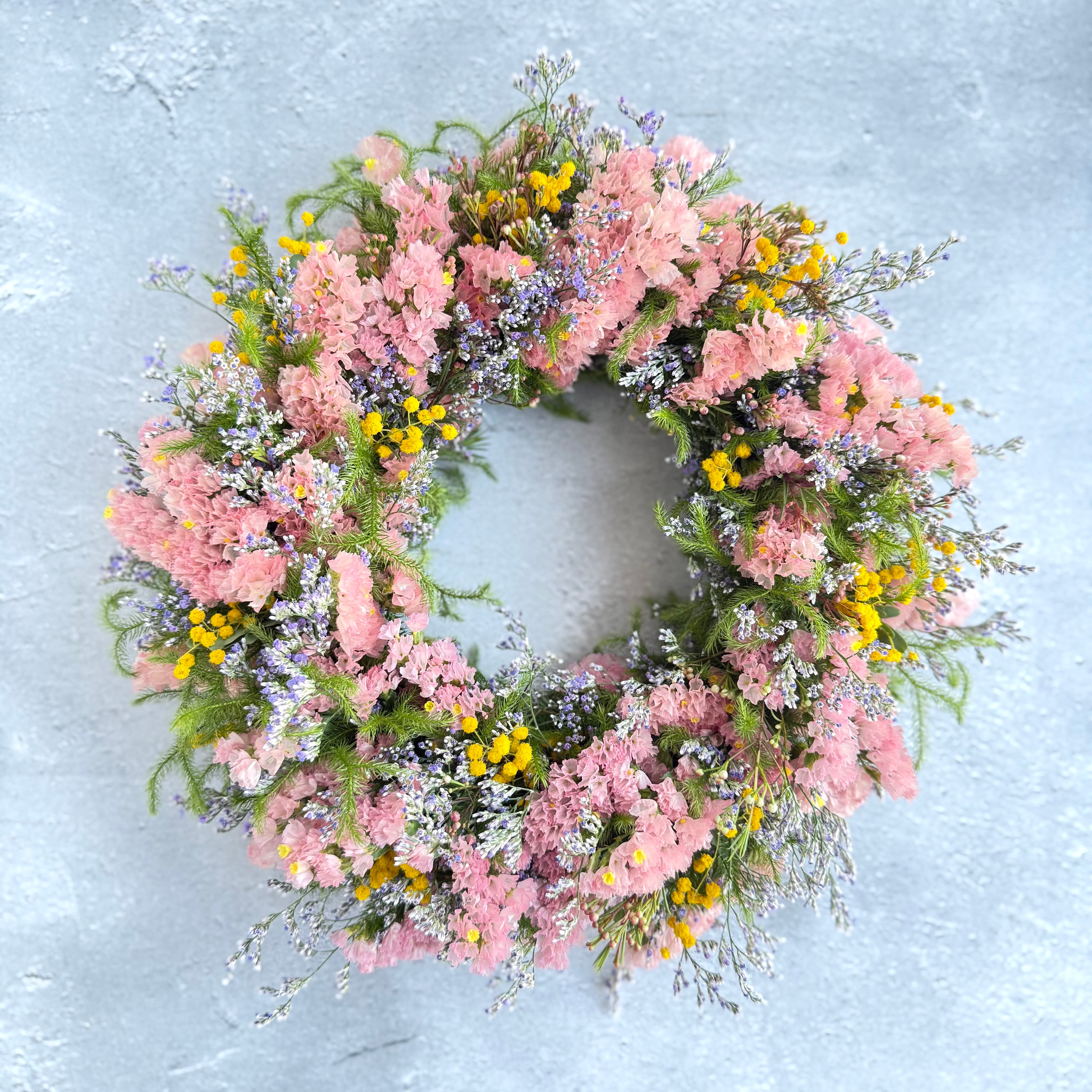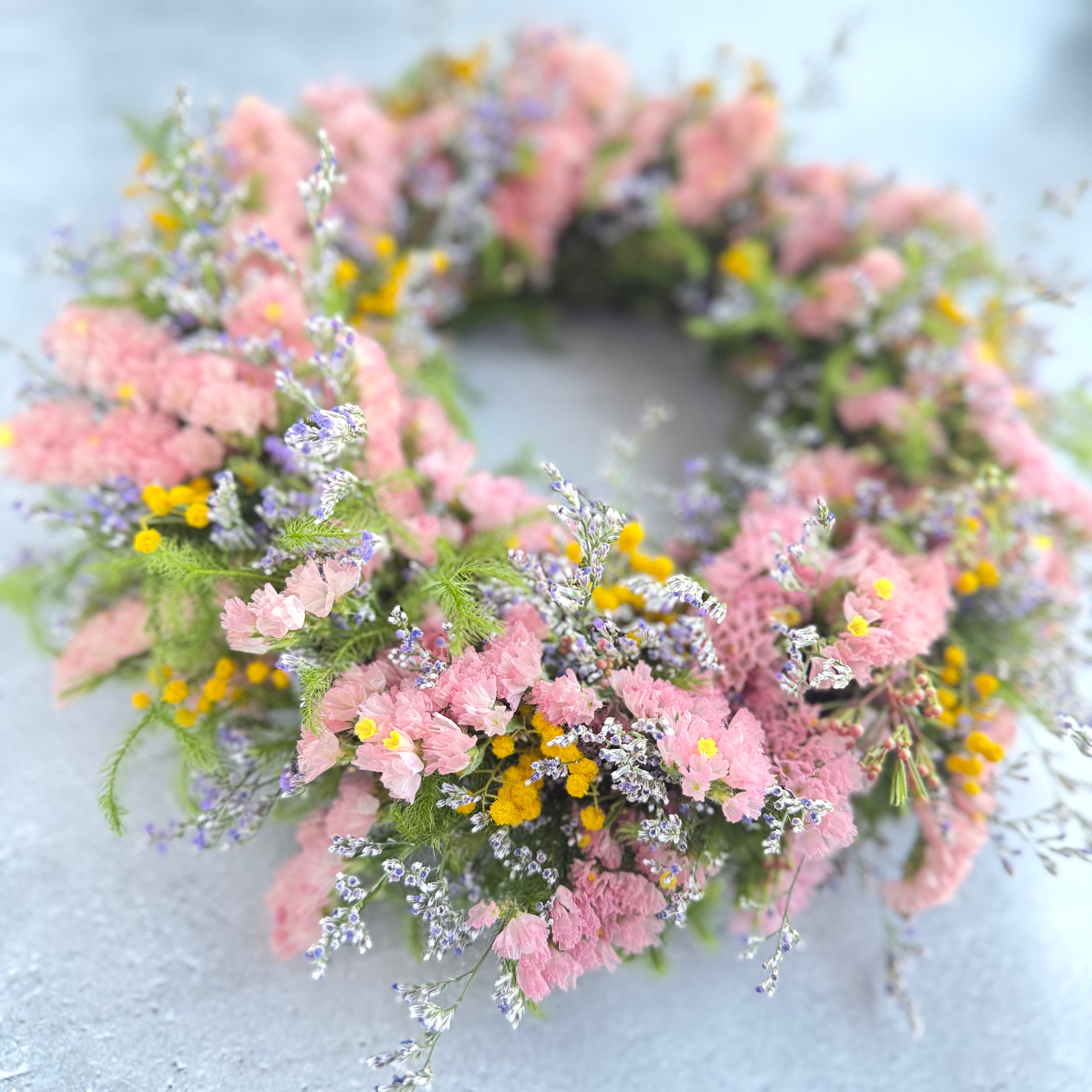 ミモザとリモニュームのドライフラワーリース|春のナチュラルリース