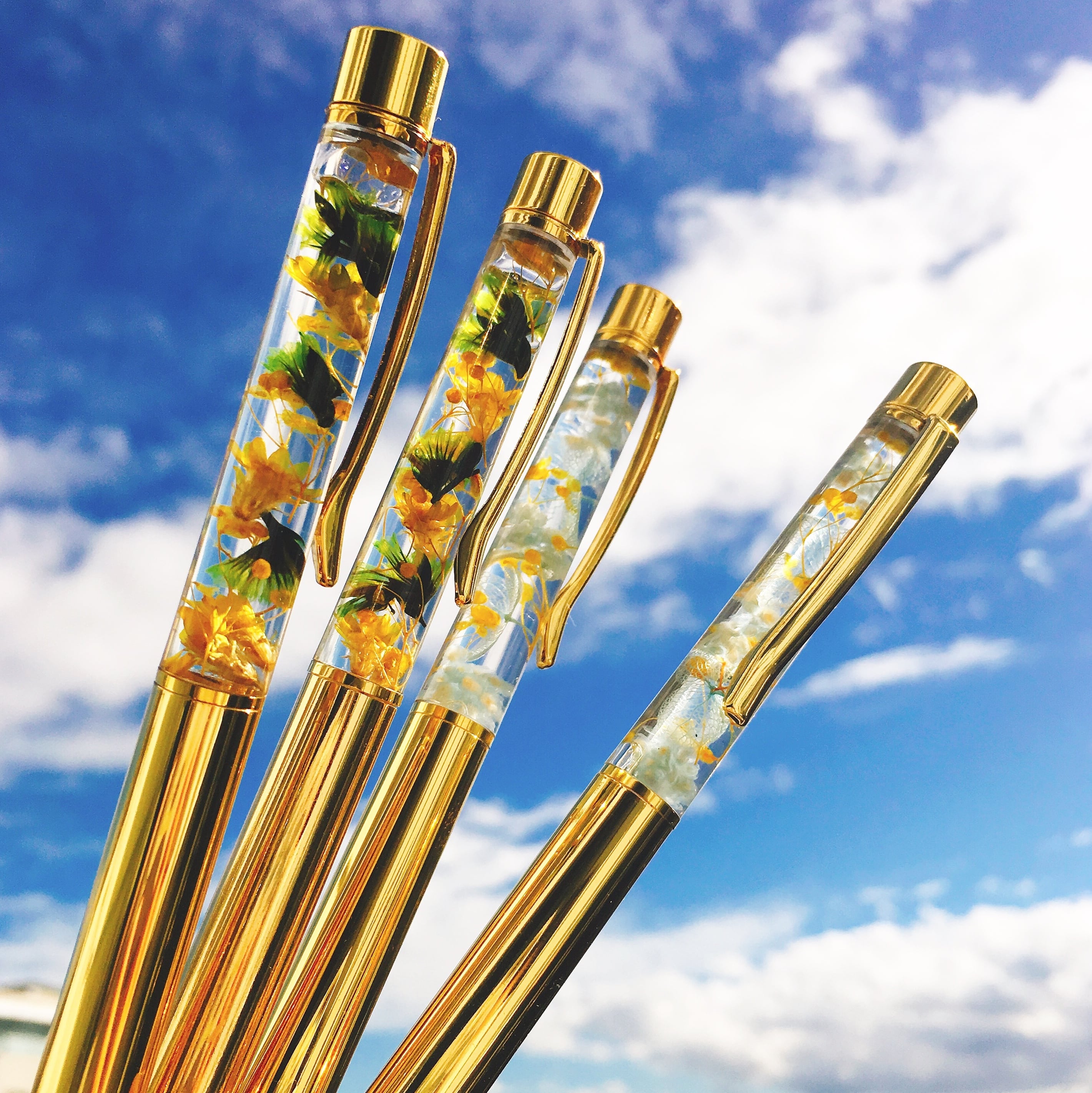 ゴールドのボールペンにハーバリウムを閉じ込めました。