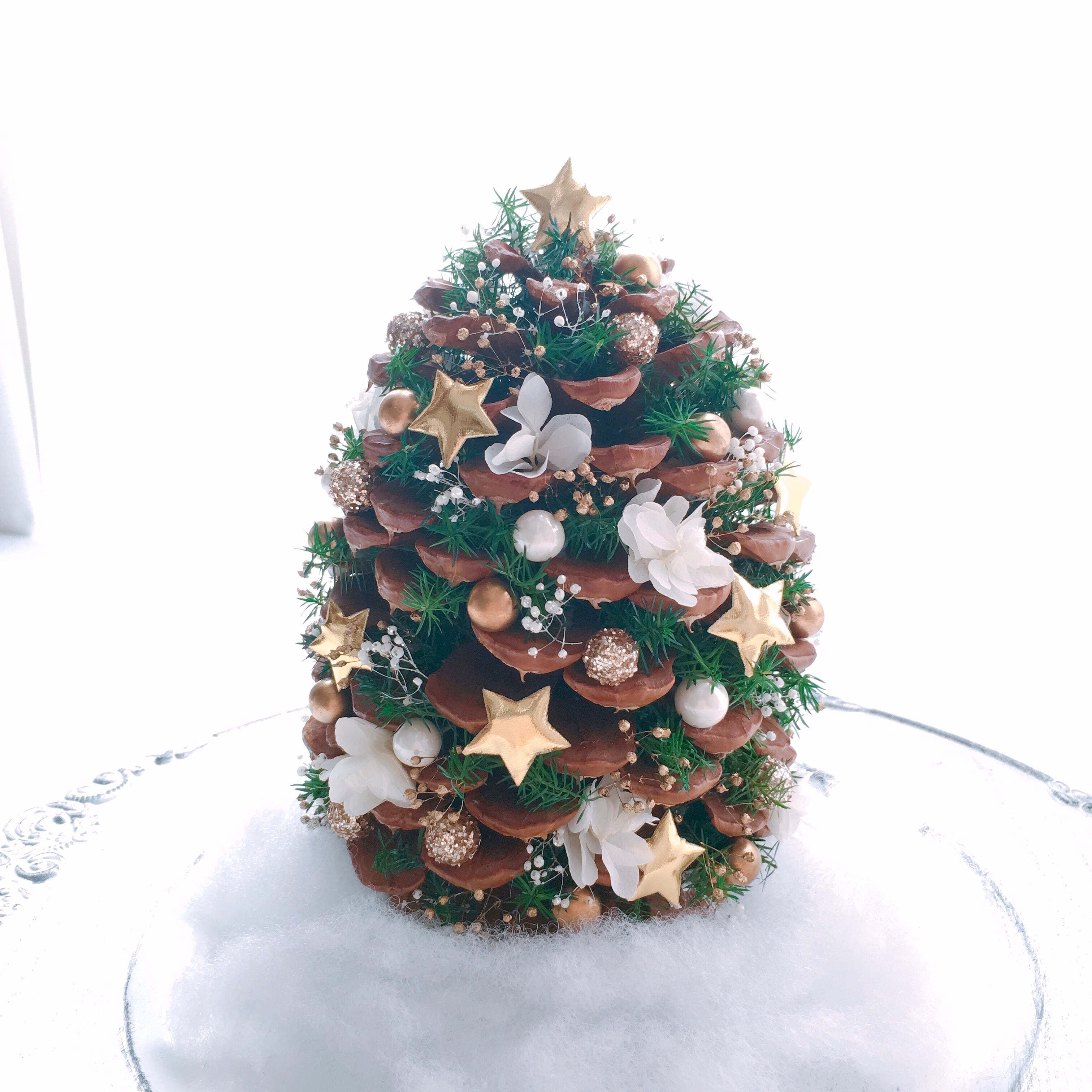 松ぼっくりの星降るクリスマスツリーWhite&Gold2019