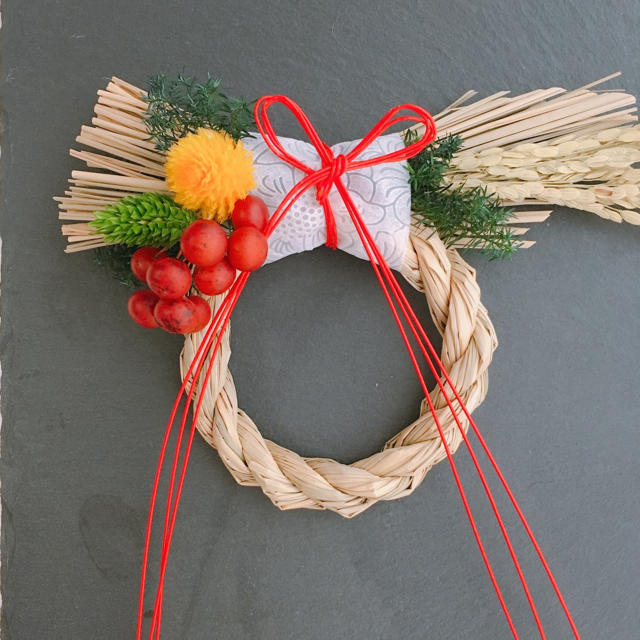 リース型のしめ飾りでおしゃれな雰囲気です。