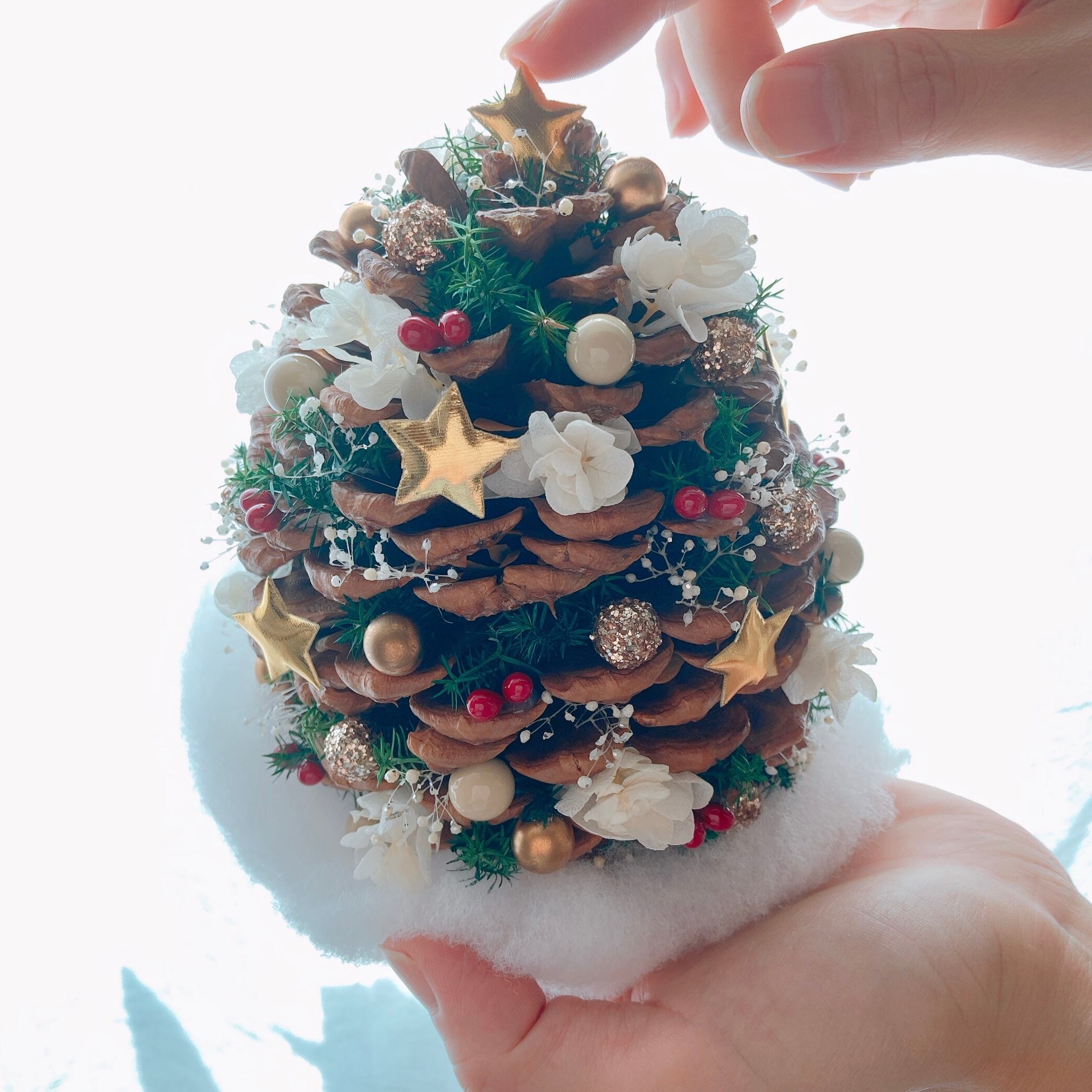 ビッグサイズの天然松ぼっくりを可愛いクリスマスツリーに仕立てました☆