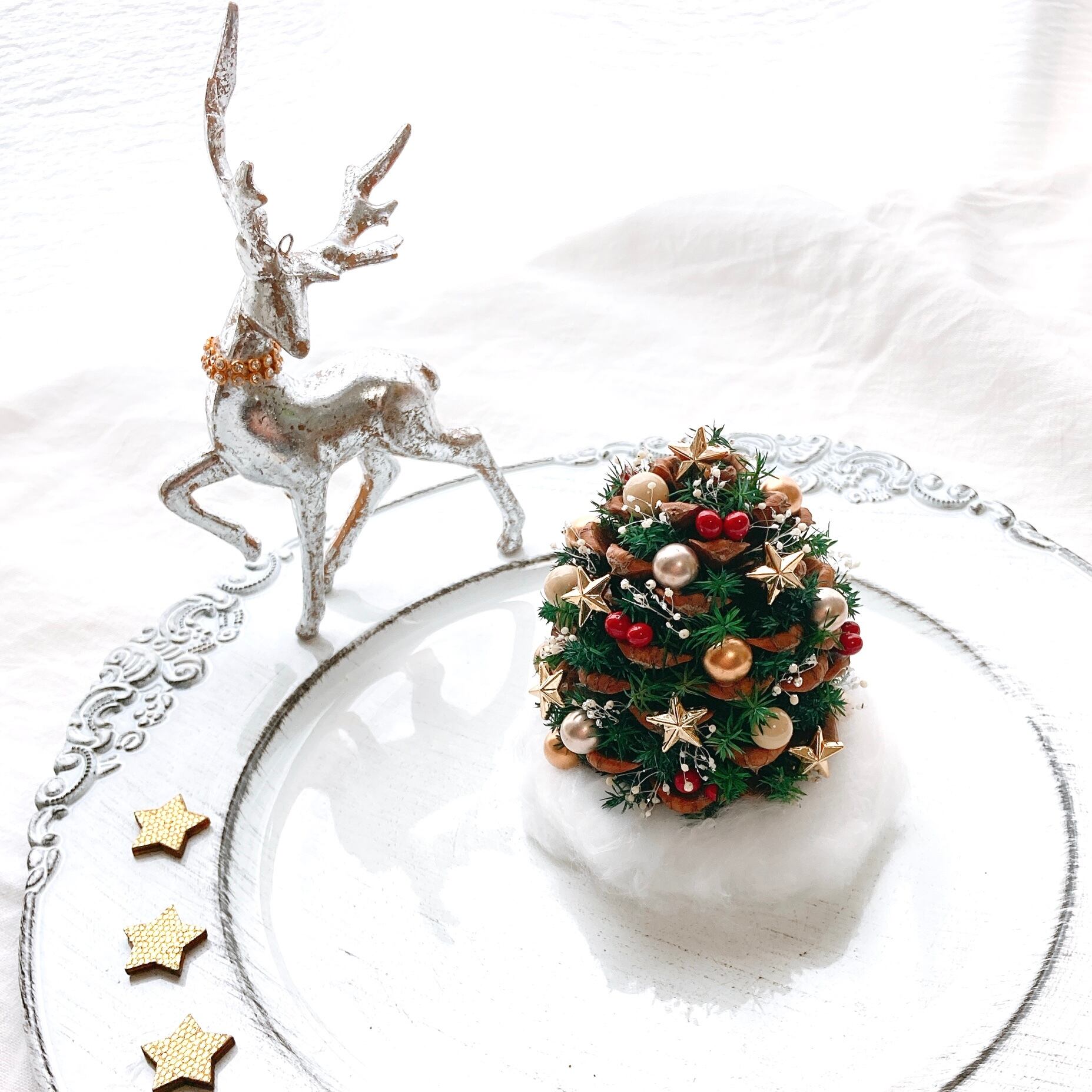 大きめの松ぼっくりを可愛いクリスマスツリーに仕立てました☆