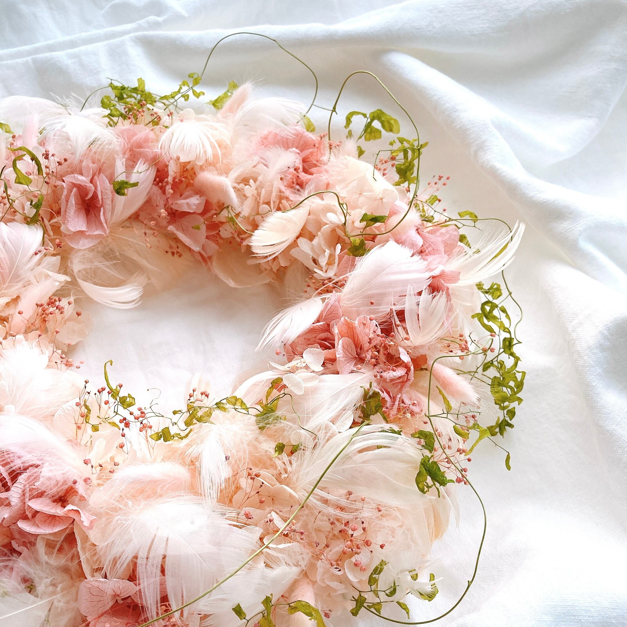 ふんわりベージュピンクの春待ちリース
