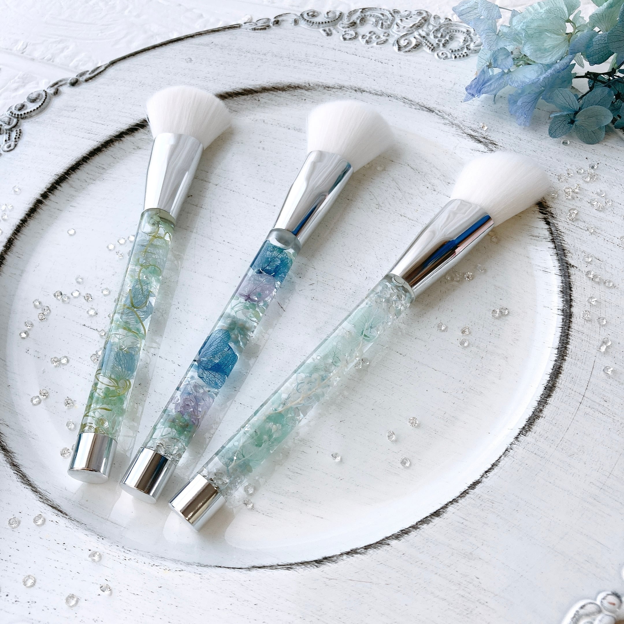 ハーバリウムメイクブラシ あじさいブルー
