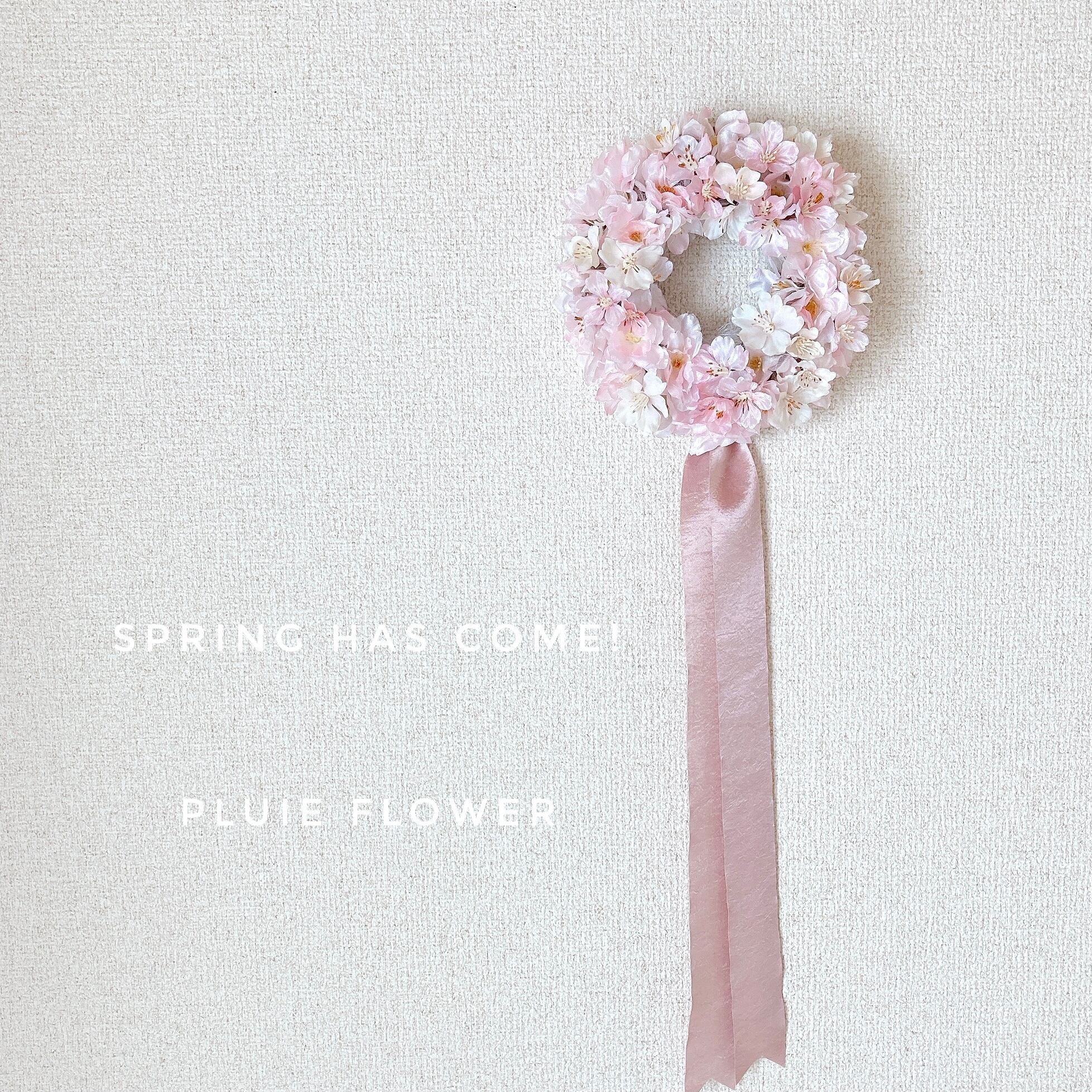 桜をふんわりと敷き詰めたリースは香りまでしてきそうな柔らかな雰囲気です。