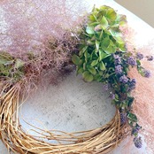 とても立体的なリースなのでスモークツリーのふわふわ感を楽しんでもらえるリースです。
