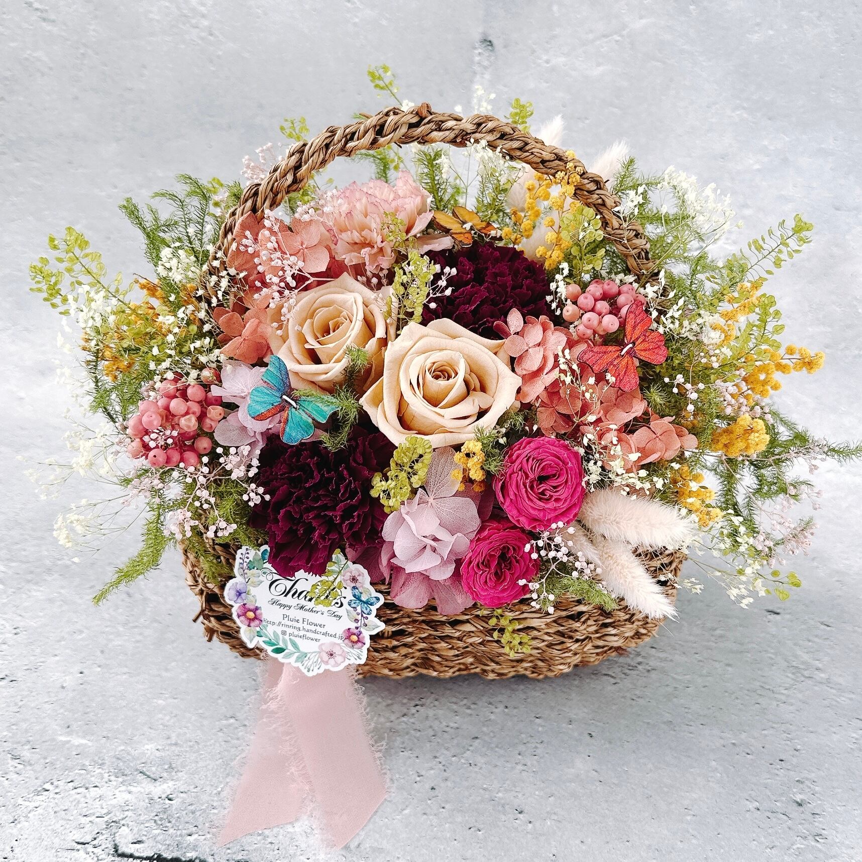 花々が咲き誇るお庭をイメージしたバスケットアレンジメントです。